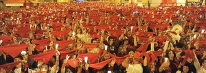 Tras despojarse del pañuelo rojo que con tanta ilusión se anudaron el pasado 6 de julio al escuchar el chupinazo, tanto la corporación como los pamploneses y visitantes han alzado al cielo este internacional símbolo de la fiesta pamplonesa para terminar recogiéndolo en alguno de los bolsillos o enroscándolo a la muñeca, a la espera de que dentro de 356 días, en el mismo lugar, vuelvan a comenzar “las mejores fiestas del mundo”.