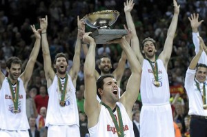 Los campeones de Europa, la selección española de baloncesto, aterrizaron en el aeropuerto de Barajas, en Madrid, alrededor de las 7.30 horas de la mañana, el día después de colgarse la medalla de oro en Kaunas (Lituania).