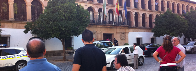 Varios agentes de la Policía registran desde primera hora de esta mañana el Ayuntamiento del municipio malagueño de Ronda así como la sede de Urbanismo. Por ahora se desconocen los motivos exactos que han llevado a la inspección, aunque se estima que podría deberse a posibles delitos urbanísticos relacionados con la anterior Corporación.
