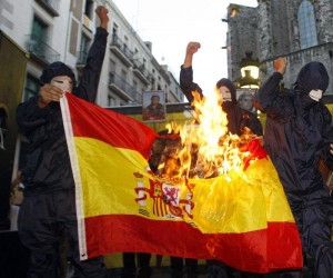 Que chusma esta gentuza ya no respeta ni la bandera ni los simbolos patrios antes habia respeto hacia la bandera y hacia los simbolos patrios ademas esta Gentuza es un mal ejemplo para el pais ya que esta Gentuza mediocre antenta contra el pais y solo hace maldades e impunidades esta gente no tiene litimes yo pienso que el estado español deberia de hacer algo para castigar a esta Gentuza atrevida y insolente..no permitamos mas desmanes de esta Gentuza delincuencial…..