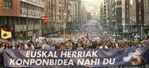 La manifestación convocada en Bilbao por los firmantes del Acuerdo de Gernika para pedir “soluciones para Euskal Herria” ha comenzado a las 17:45 de esta tarde, con la presencia de varios miles de personas. Una pancarta con el lema ‘Euskal Herriak konponbidea nahi du’ (Euskal Herria necesita soluciones) ha abierto la marcha. Los manifestantes, miles de personas, han coreado gritos a favor de la independencia y del traslado a Euskadi de los presos de ETA.