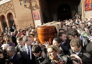 Una vez cerrada la capilla ardiente, el féretro con los restos mortales de Antonio Chenel ‘Antoñete’ ha sido sacado a hombros de familiares y toreros por la Puerta Grande de Las Ventas cubierto con un capote de paseo que lucía la imagen de la Virgen de la Paloma. Después, el cortejo fúnebre ha partido rumbo al cementerio de La Almudena, donde Antoñete ha recibido cristiana sepultura.