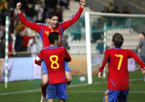 El partido no pudo arrancar mejor para los de Luis Milla, pues antes de completarse los diez primeros minutos, ‘la Rojita’ ya había perforado la meta de Brki. Desde el flanco derecho, Isco mandó un balón a la otra banda, por donde entraba Planas, que se quedó sólo ante el portero rival. Lejos de cegarse con el gol, el lateral culé retrasó el cuero para que Muniain, a placer, adelantase a los españoles.