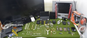 Durante el registro los agentes de la Guardia Civil de Órgiva localizaron numerosos efectos, tales como televisores, ordenadores, ordenadores portátiles, joyas, teléfonos móviles, herramientas, etcétera, presumiblemente procedentes de robo.