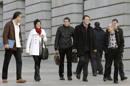 Los diputados de Amaiur llegan al Congreso. De izquierda a derecha, Xabier Errekondo, Maite Ariztequi, Iker Urbina, Jon Iñarritu, Sabino Cuadra e Iñaki Antigüedad. Emilio Naranjo.