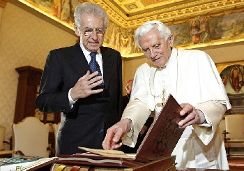 El Papa Benedicto XVI se ha reunido este sábado con el presidente del Consejo italiano, Mario Monti, con quien ha hablado sobre la situación “difícil” y “casi irresoluble” de Italia. Ésta es la primera vez que Monti es recibido en audiencia por el Papa desde que asumió la jefatura de gobierno.