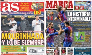José Mourinho va perdiendo crédito entre la prensa de Madrid tras caer por 1 a 2 ante el FC Barcelona en la Copa del Rey. Los cinco puntos de ventaja en la Liga son el mejor aval del técnico portugués, a quien se le reprocha, sin embargo, que sea incapaz de hacer frente a los azulgrana.