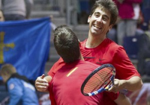 La pareja española formada por los tenistas Marcel Granollers y Marc López han conseguido este sábado el punto que da a España el pase a los cuartos de final de la Copa Davis, después de imponerse en tres sets (6-2, 6-3 y 6-1) en una hora y cuarenta y cinco minutos a los kazajos Yuriy Schukin y Evgeny Korolev en el tercer partido de la eliminatoria.