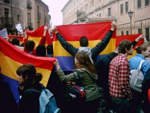 porqué nadie dice nunca nada cuando aparecen los pancarteros perroflautas con sus banderas republicanas y los separatas antiespañoles con sus esteladas, o es que no se consideran banderas anticonstitucionales como es la del águila, porque ésta si estuvo un tiempo en vigor en esta democracia, si hubiera sido una manifestación, por ejemplo de DNE o de AE se hubiera montado el lío padre por toda la caverna mediática socialista, comuinista y separatista.