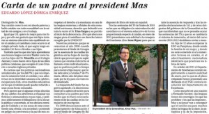 En una carta en El Mundo dirigida al president Artur Mas, explica que “quiero lo mejor para mis hijos y por ello me gustari?a que mis hijos tuvieran un sistema educativo ma?s equilibrado entre el catala?n y el castellano como ocurre en el colegio privado Aula, al que segu?n tengo entendido Ud. lleva o llevaba a sus hijos”.