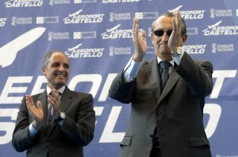 El ex presidente de la Generalitat, Francisco Camps (i), y el presidente de la Diputación y presidente de Aerocas, Carlos Fabra, durante la inauguración hace un año del aeropuerto de Castellón.