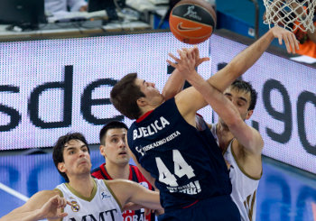 En el tiempo parcial, un mate de Teletovic y dos tiros libres anotados por Brad Oleson permitieron coger un buen soplo de aire a los ‘baskonistas’. Dos triples consecutivos de Sergio Llull y de Velickovic pusieron por delante a los blancos (75-76). El partido continuó por los derroteros de los lanzamientos lejanos, desde donde Oleson certificó la victoria del equipo vitoriano (82-79) pese a los vanos intentos blancos.