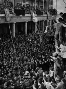 Cuando el barco tocó el muelle de Barcelona el ambiente se tornó inenarrable. Miles y miles de personas se agolpaban en tierra, con pañuelos blancos agitados al aire como corazones en delirio. La emoción era incontenible. Los familiares mostraban fotografías de los suyos por si el tiempo les había hecho irreconocibles. Las madres gritaban los nombres de sus hijos como enloquecidas. España entera lloraba conmocionada. De pronto se tendió una escala y el venerado general Muñoz-Grandes, subió a bordo del Semíramis. Allí se encontró con sus hombres de la División Azul, los Capitanes Palacios y Oroquieta, los Tenientes Rosaleny y Altura, el Sargento Salamanca, el soldado Victoriano Rodríguez…