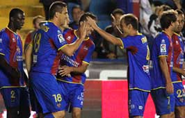 El Levante celebrando una victoria la pasada temporada (Reuters) Jueves 23/08/2012 El club blaugrana ha vencido al Motherwell 0-2 en el partido de ida de los ‘play-offs’ de la Europa League. Los goles de Juanlu y El Zhar acercan el billete para Europa.