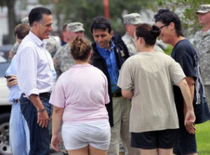 El ex gobernador de Massachusetts dio inicio a la recta final de su lucha por la Casa Blanca con su visita a Jean Lafitte, Louisiana, donde las brigadas de emergencia daban auxilio a las víctimas del huracán Isaac. La tormenta produjo inundaciones severas en el área esta semana antes de que fuera degradada a depresión tropical.