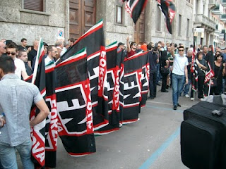 Luca Castellini, coordinador de Forza Nuova para el norte de Italia, denuncia una invasión extranjera y declara: “En nombre de una solidaridad hipócrita y suicidaria, los italianos están diariamente relegados en la concesión de viviendas sociales y en su búsqueda de empleo. la criminalidad extranjera amenaza la seguridad de los italianos en sus propios barrios y pone en peligro su integridad cultural y religiosa”.