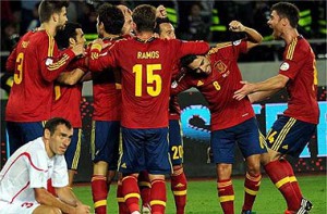 De aquel abrumador y poco provechoso dominio sacó España, antes del descanso, dos cabezazos sin tino, un zurdazo lejano de Silva al palo y un derechazo de Xavi, aún más lejano, que pilló atento a Loria. Jordi Alba le dio, sin exagerar, más vuelo al equipo que Arbeloa y hasta Sergio Ramos y Piqué aprovecharon su falta de trabajo principal para ver si en el otro área donde no llegaba la maña lo hacía la fuerza. Pero Georgia, siempre almacenada junto a su portero, le hizo perder a la Selección ese buen humor que pasea desde hace cuatro años. También el juego que fascina a los coleccionistas.