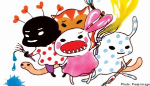 Pues otro de los dibujos, el de la derecha, era blanco pero lo han llenado de lunares azules, también podría quejarse, ¿quien lo pintó así? para que no me llamen racista no diré de qué otro dibujo sospecho, cual pudo ser el que le pintó los lunares con esa tinta azul.