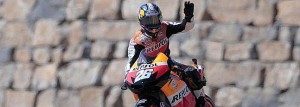 El piloto catalán Dani Pedrosa (Honda) logró cruzar en primera posición la meta del Gran Premio de Aragón, disputado este domingo sobre el trazado de MotorLand, para así resarcirse de su mala actuación en Misano, mientras que Jorge Lorenzo (Yamaha) consiguió el segundo puesto por delante del italiano Andrea Dovizioso (Yamaha), que fue tercero.
