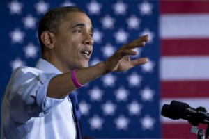 Obama llevaba un brazalete rosado para mostrar su apoyo al Mes de Concientización sobre el Cáncer de Mama mientras hacía campaña en Iowa y a continuación en Ohio, y le recordó a su audiencia que la primera ley que refrendó después de convertirse en presidente les facilitó a las mujeres hacer demandas judiciales por reclamos salariales.