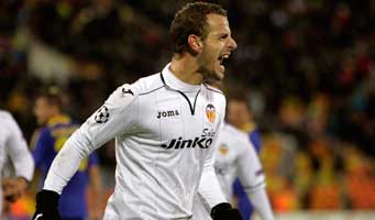 El mejor exponente del rocoso diseño fue el trivote Gago-Albelda-Tino Costa. La idea dejó solos arriba a Guardado, Feghouli y Soldado. Sobre todo, a Soldado. Pellegrino le mandó casi en solitario a la guerra, a una injusta lucha contra la defensa bielorrusa. El delantero asumió el reto. Y lo superó con creces. Muchas son sus virtudes, pero seguro que la más impresionante es buscarse un gol, un disparo, una ocasión. Siempre en el momento oportuno. Lo intentó en el minuto 4, a pase de Gago. Desasistido, desapareció hasta que al borde del descanso se sacó un penalti de la nada, cuando el BATE más apretaba y su equipo más reclamaba la labor del capitán, y lo marcó. Haría dos más, pero eso llegará más tarde.