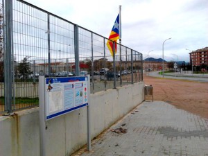 LVL.- El centro escolar ‘La Sínia’ de Vic (Barcelona) ha decidido colocar la estelada dentro de su recinto. Situada en el lateral de la parte frontal del centro, la bandera aparece por detrás de la verja del mismo y al lado del cartel donde se indica el nombre del colegio.