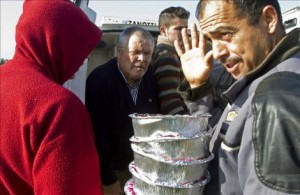 Mora, que ha lamentado que la crisis económica le impedirá seguir con esta costumbre en años venideros, ha modificado este año el reparto, y en lugar de hacerlo por la tarde lo efectuó desde las 13.00 horas, con la ayuda de voluntarios de la ONG Cáritas, y provisto de recipientes para conservar la comida caliente y en buen estado el mayor tiempo posible.
