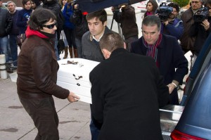 A las diez de la mañana llegaba a la iglesia parroquial de San Juan Bautista el coche fúnebre con los restos mortales de la niña procedentes del tanatorio de Bollullos Par del Condado (Huelva), donde se encontraban desde que hacia las dos de la madrugada llegaran de Almería.