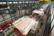 Es una de las mayores apuestas de futuro del astillero estatal Navantia. Hace un año se embarcó el motor eléctrico principal del S-81 “Isaac Peral”. Para 2013 está prevista su puesta a flote. En la imagen, trabajos del proyecto en abril de 2012 en las instalaciones de Navantia en Cartagena.