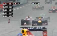 Entre tanto Massa, que salía en segunda posición, pierde ésta siendo superado por varios pilotos, dejando la lucha abierta a Vettel Webber y Hamilton, quien cometió uno de los errores a los que nos tiene acostumbrados y en la primera entrada que hace para el cambio de neumáticos, se confunde y para en el Box de Mclaren en lugar del suyo de Mercedes, lo que le hace perder unos preciados segundos ante la sorpresa de todos.