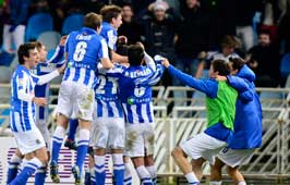 La fiesta estaba en marcha y el Málaga arrojó la toalla para ser un partícipe más de la exhibición blanquiazul que tuvo continuidad en el minuto 29 con un gol de Griezmann, el mejor jugador del partido, al aprovechar un centro desde 30 metros de Illarramendi. Faltaban dos minutos para el descanso cuando de forma sorpresiva y con un Málaga tocado llegó el gol de Morales, que contó con la colaboración de Bravo al no acertar a blocar su fuerte aunque localizado remate.