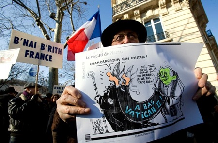 Miembros de la organización masónica judía B´nai B´rith atacan a la Iglesia católica en las calles de París