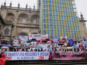 Tras rodear la catedral, los manifestantes se han dirigido a la Praza de Praterías, en donde la organización ha leído un manifiesto en el que han denunciado «la vuelta atrás sin precedentes» con el PP después de una «batalla dura y persistente en el tiempo» por «el derecho de las mujeres a decidir su maternidad».