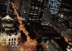 Alrededor de 100.000 personas -según los convocantes- han tomado las calles de la ciudad carioca para protestar por el elevado coste de organizar dichos eventos deportivos y, además, por el aumento del precio del transporte público de 2,75 a 2,95 reales. Los manifestantes han recorrido con flores en las manos el centro de Río de Janeiro en dirección a Cinelandia. Sin embargo, se han producido disturbios con pequeños grupos que han intentado desviarse del trayecto autorizado.