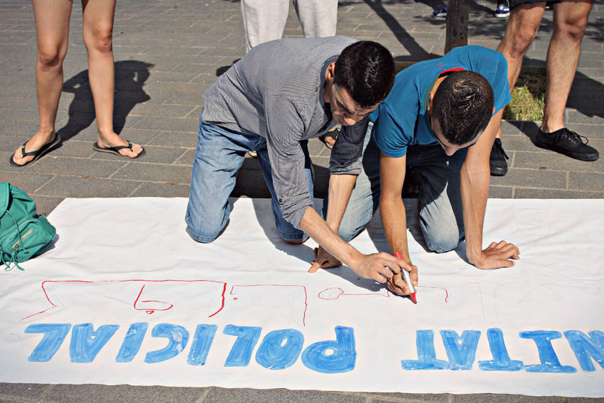 Al dia siguiente, una treintena de amigos y familiares de los detenidos se concentraron a las puertas del juzgado de guardía detrás de unas pancartas en la que se podía leer. “Stop impunitat policial” “Stop racisme”, “Policia racista” “Llibertat detinguts”, en árabe y en catalán. La salida de los detenidos fue recibida entre aplausos y lágrimas de sus familiares y amigos.