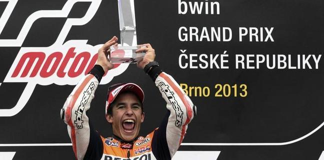 Marc Márquez se llevó el triunfo en el GP de la República Checa, por delante de Dani Pedrosa y tras un mano a mano espectacular con Jorge Lorenzo, que abatido tuvo que conformarse con la tercera plaza.