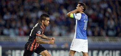 El campeón de Ucrania llegaba a Guipúzcoa intentando jugar igual de antaño sin las estrellas que llevaban a buen puerto ese esquema. Las ventas de Fernandinho (Manchester City) y Mkhitaryan (Dortmund) son un lastre importante, toda vez que sus reemplazos -Bernard, Fernando y Fred, internacionales absolutos con Brasil- ni tan siquiera juegan de titulares. Parecía firmar el empate a medida que su defensa achicaba balones en proporción al acoso ‘txuri-urdin’ hasta que Teixeira rompió el contrato con un gol tras jugada brasileira con taconazo de Douglas incluido. Vela insufló esperanza en los pulmones de los aficionados con su cabezazo al larguero y cargó miedo al mismo tiempo dentro de los corazones eslavos. Anoeta esperaba la magia que suele sacar de la chistera alguno de sus hombres de confianza. Esta vez el conejo en forma de gol lo sacó de nuevo el brasileño Teixeira aniquilando cualquier esperanza. La misma que se desvaneció con la lesión final de Granero, que puede ser grave y sumar más quebraderos de cabeza a la noche negra blanquiazul.