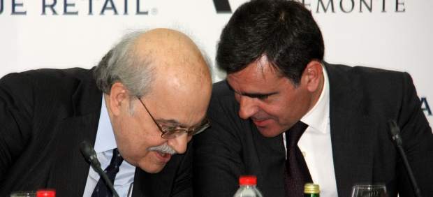 El consejero de Economía, Andreu Mas-Colell, charla con el consejero delergado de Veremonte y presidente de BCN World, Xavier Adserà.