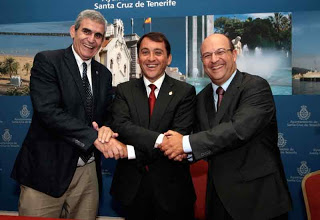 El alcalde de Santa Cruz de Tenerife, José Manuel Bermúdez (en el centro de la imagen), ha firmado sendos convenios con dos de las principales organizaciones de la masonería a nivel estatal, el Supremo Consejo del Grado 33 y la Gran Logia de España, para rehabilitar el Templo Masónico de la calle San Lucas.