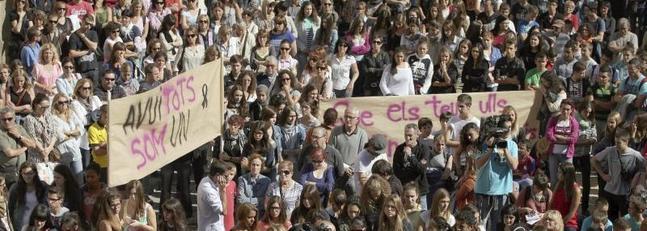 Unas 2.500 personas han condenado el asesinato en una concentración en la Plaça Major de la ciudad: ‘No confundamos amor con posesión’, podía leerse en una de las pancartas, en un acto al que muchos funcionarios del consistorio han asistido con crespón negro en sus solapas, y que ha contado con participación de colegios y la asistencia del abuelo paterno.