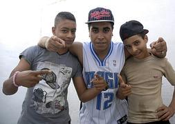 El rapero, Klay BBJ, en el centro, junto a dos amigos, poco después de ser liberado el pasado jueves.