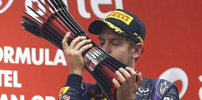 No necesitaba ganar, pero si podía hacerlo, ¿por qué no intentarlo? Dicho y hecho: Sebastian Vettel logró una nueva victoria (décima de este 2013, sexta consecutiva y tercera en el GP de India), lo que le sirvió para conseguir los puntos necesarios para lograr el gran objetivo: proclamarse tetracampeón del mundo. El piloto alemán no pudo sino estallar de alegría cuando entró en meta. ¿Qué importa la multa que le puede caer de la FIA por celebrar el título realizando unos espectaculares donuts delante del público? ¿Qué más da, si ya puede mirar a los ojos a Alain Prost, ni más ni menos?