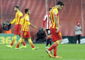 El Barça estaba grogui, pudo encajar el segundo y se mascaba la tragedia en Can Barça. El público rojiblanco se las prometía muy felices. Siete partidos en su nuevo feudo e invictos. El partido se le escapaba al Barça en la segunda parte y en esos momentos fue cuando su imagen fue la más pobre. Cuando tenía que dar la vuelta al choque, no supo. No fue un problema de actitud, sino de falta de alternativas. Sin soluciones en el campo, Martino tampoco supo encontrarlas desde fuera. Sus cambios consistieron en quitar a Xavi e Iniesta, quizá un mensaje con segundas, y dar entrada a Pedro y Sergi Roberto. Ni que decir que no logró el acicate que buscaba.