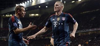 Un golazo de Schweinsteiger sólo nueve minutos de que los ‘diablos rojos’ se adelantasen con un córner en el que quedó retratada la defensa del Bayern, confirmó el espíritu irreductible y el favoritismo del campeón para acercarse a las semifinales de una competición en la que los alemanes vuelven a ser los máximos candidatos al trono europeo. Se le complicó la eliminatoria al equipo de Guardiola con el cabezazo de Vidic al inicio de la segunda parte tras un córner lanzado por Rooney, pero es tal la capacidad de reacción y tantísimos los recursos de los que dispone el Bayern en ataque que, cuando falla la puntería de sus delanteros, cualquier otro llegador puede rematar al contrario, en este caso, un Manchester United venido a venos que no pudo aguantar en Old Trafford con su portería a cero. Lo previsible, con el potencial del que dispone el Bayern de Múnich, al que le costó demasiado derribar la muralla de los ingleses, dominados y entregados a defenderse en su campo frente al empuje y la insistencia del enemigo.
