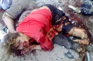 Ests horribles imágenes de cuerpos sin vida en el suelo y heridos mutilados desangrándose, son la obra de los asesinos que la UE y los EEUU apoyan y respaldan. Esta es la obra de nuestros dirigentes y nuestros políticos. Miren a esa mujer en el suelo destrozada por las bombas que han recibido la bendición de esa maldita oligarquía que hace y deshace vidas y naciones. Esta es la obra de? los “demócratas” de la UE y EEUU.