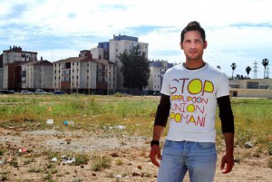 Lagarder Danciu posa con una camiseta en la que se alude a la supuesta corrupción en la Unión Romaní