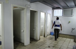 El artefacto incendiario cayó delante de las puertas de los lavabos y en la zona donde se lavan los pies.