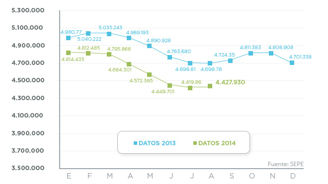 De esta forma, el nuevo incremento del desempleo en el octavo mes del año acaba con la racha de descensos que llevaba registrando el paro en los últimos seis meses.