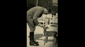 Una de las imágenes, donde alimenta a un venado, la leyenda remarca: “El Führer es un amigo de los animales”. Otra lo muestra dándose la mano con un grupo de trabajadores sonrientes, mientras que otra lo presenta en un encuentro con soldados heridos.