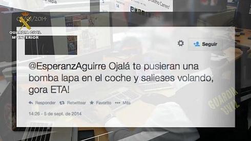 “Los comentarios y referencias en las redes sociales, llevadas a cabo de forma reiterada, en perfiles públicos y con numerosos seguidores adheridos, van desde el deseo de que ETA vuelva a cometer atentados, hasta alabanzas a atentados ya cometidos, pasando por enaltecimientos de terroristas de ETA juzgados y condenados, así como por bienvenidas a presos excarcelados de ETA. Además, los comentarios recogen el deseo de que ETA atente contra determinadas personas y también hacen referencias humillantes a los daños físicos sufridos por víctimas del terrorismo de ETA”, ha señalado el Ministerio del Interior